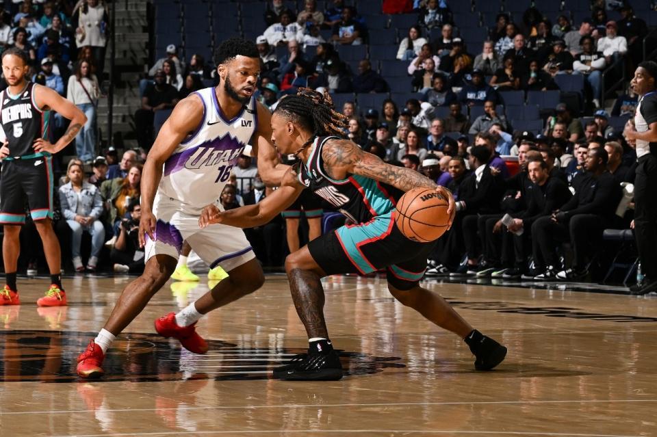 灰熊过去4场连续客场输给开拓者两次、勇士与掘金遭遇4连败,爵士上一场主场119-135输给开拓者,本赛季前两次交锋双方各取一胜。本场灰熊缺少莫兰特、伊迪、克拉克等多位球员,爵士缺少贾伦、马尔卡宁、凯斯勒、努尔基奇与乔治。首节双方持续紧咬比分缠斗,爵士前10分半钟进24-23领先,爵士随后略微拉开比分,首节结束爵士32-28领先灰熊。首节爵士25中12,其中三分12中6,灰熊28中11,其中三分8中2,双方均没有球员得分上双。